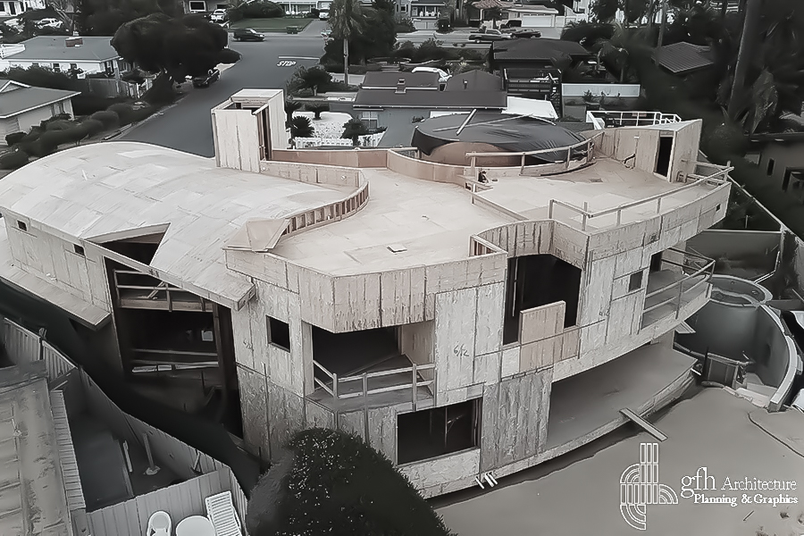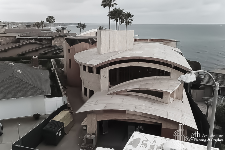 This 9,300 s.f. two-story custom beach house overlooking the Pacific Ocean from the bluffs above is currently under construction. The design reflects the tight site restraints, Coastal Commission’s requirements, and the City of Carlsbad’s local ordinances while meeting with the Client’s desires for a unique home that is contemporary yet “soft” in appearance with a feeling of livability within. It features an open plan with a 33-foot radius telescoping glass door off the rear patio at the bluff’s edge exploding the views to the Pacific Ocean’s horizon. It also features 4 bedrooms, 4 bath, a 4-level elevator, an office conference room with wine storage, game room, home theater, and an exercise room. This home truly is a “one-of-a-kind.”