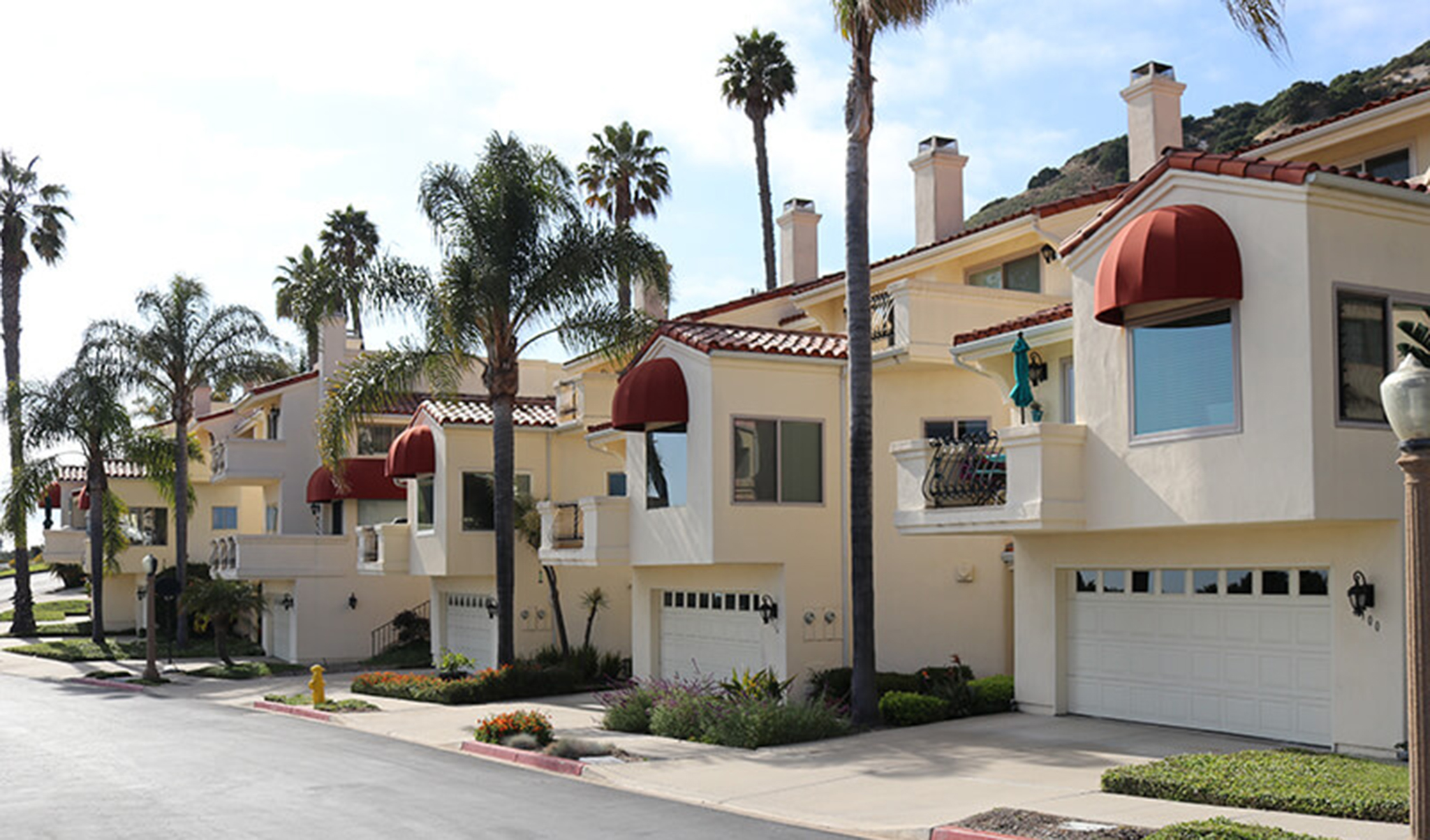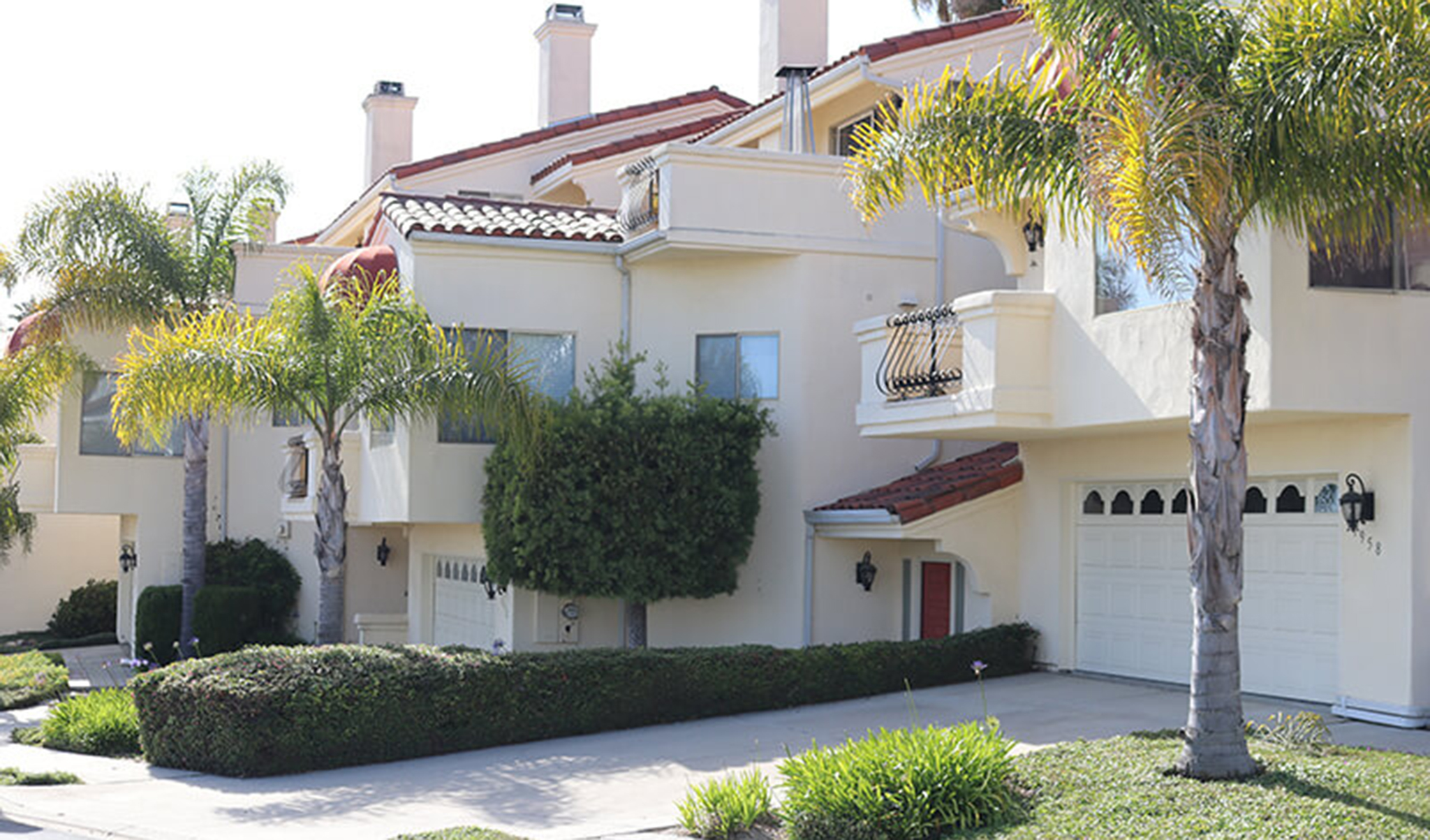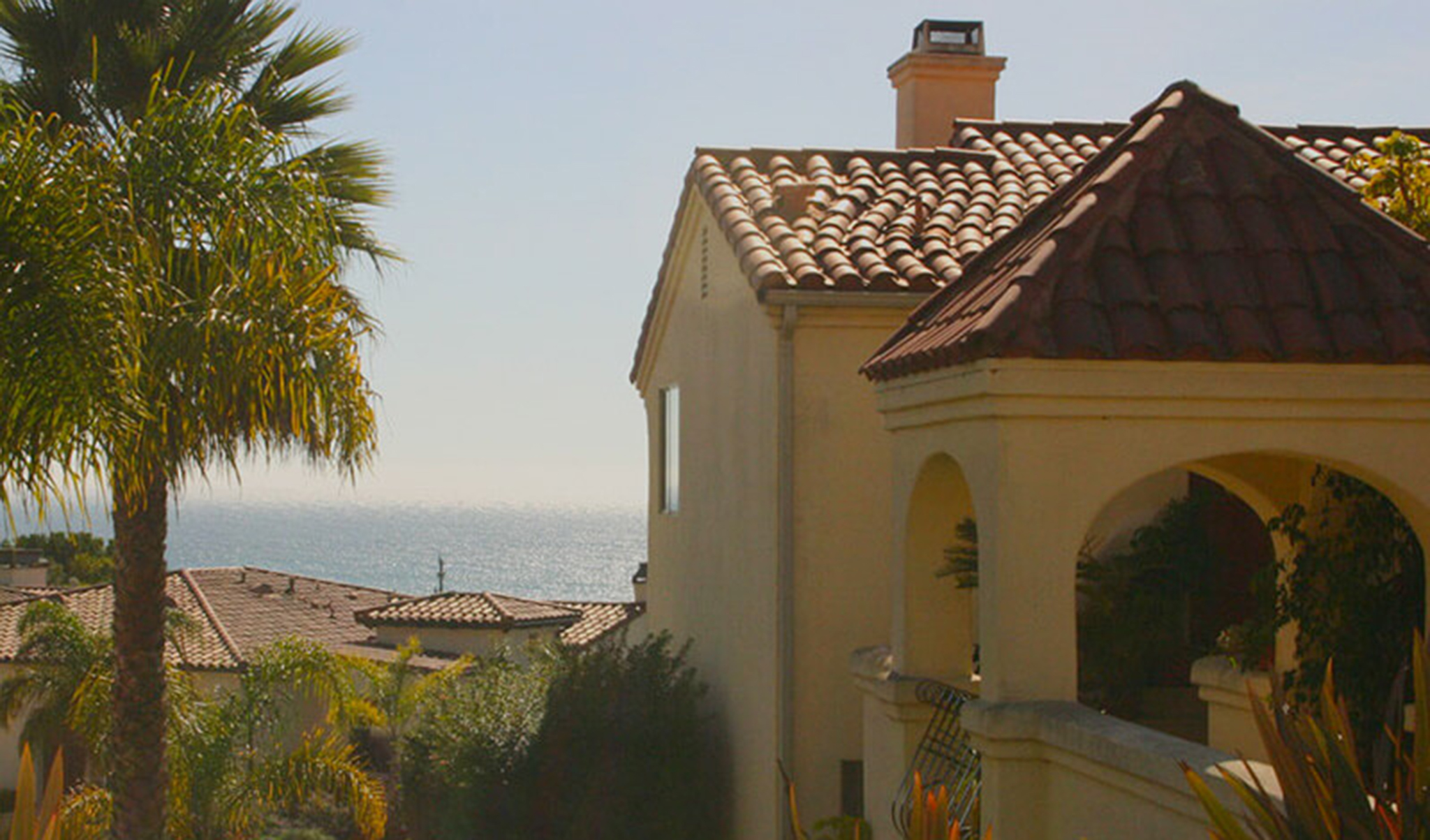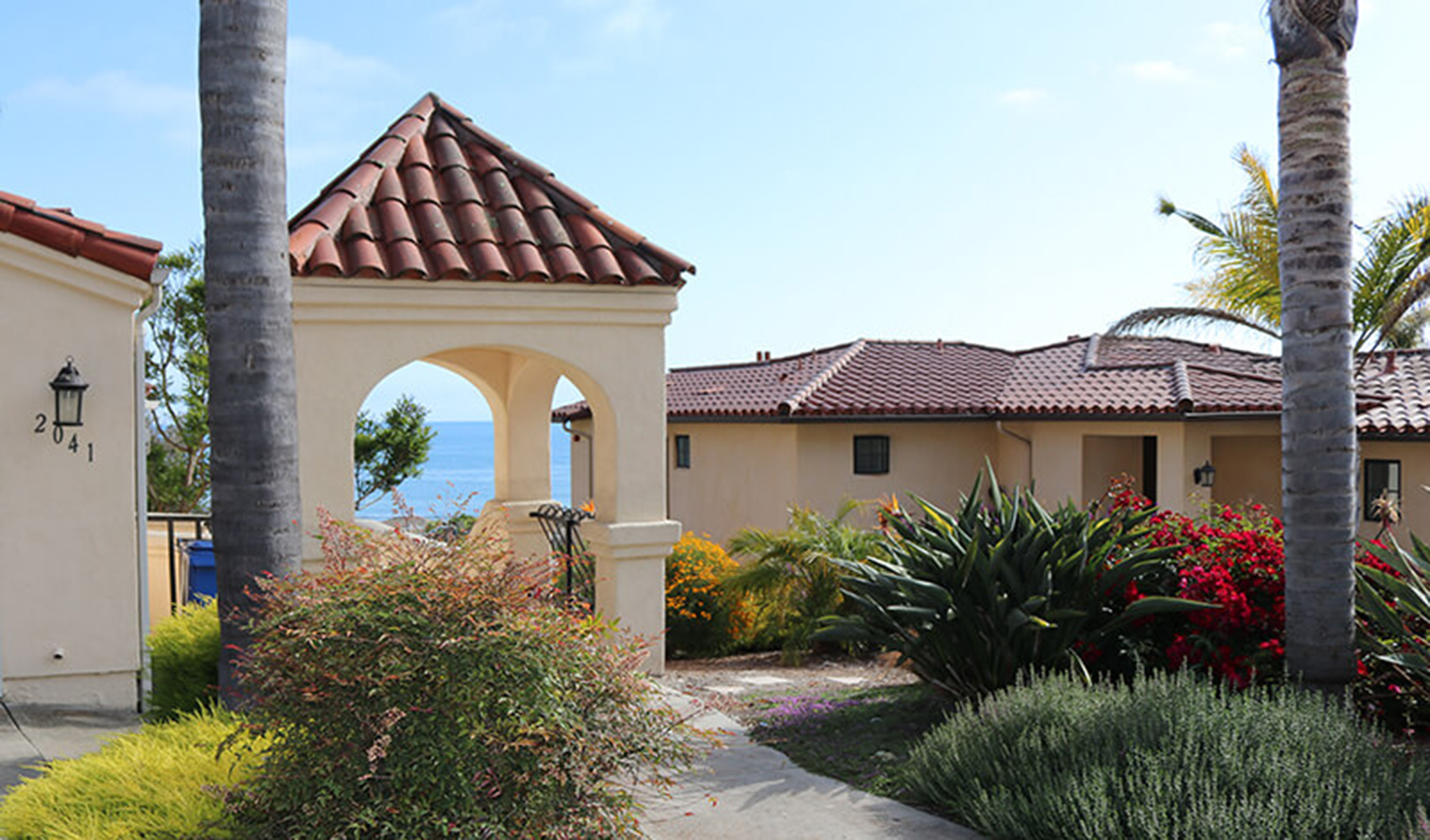 This planning unit development (PUD) consisting of 78 units comprised of townhouses, single family residences, and "flats" featuring a Mediterranean motif and designed to maximize views to the Pacific Ocean from each unit.