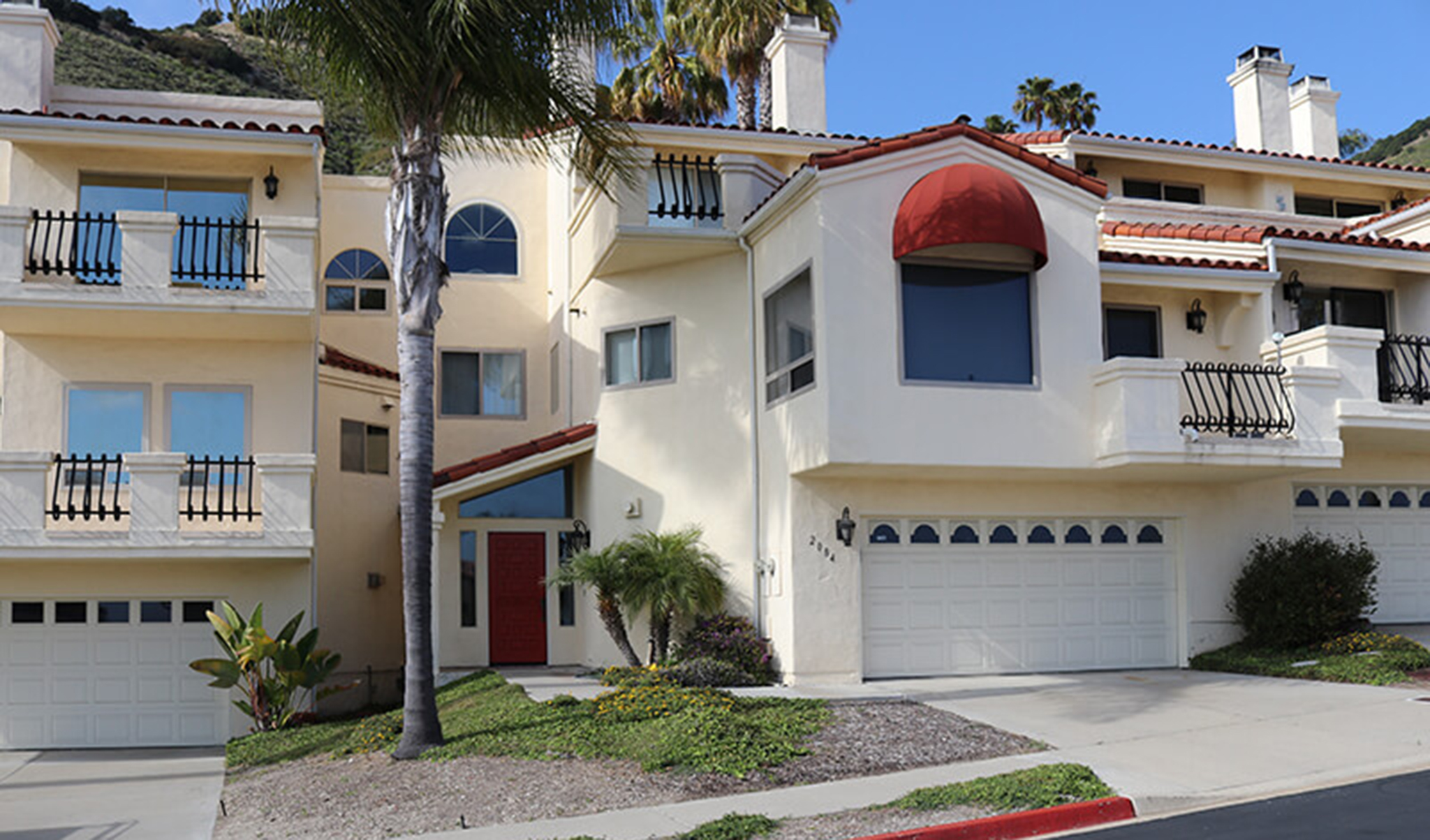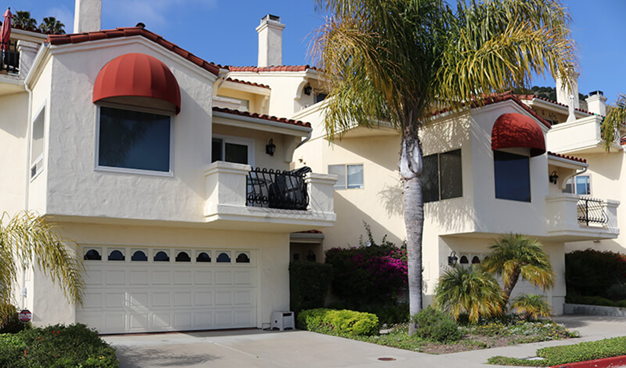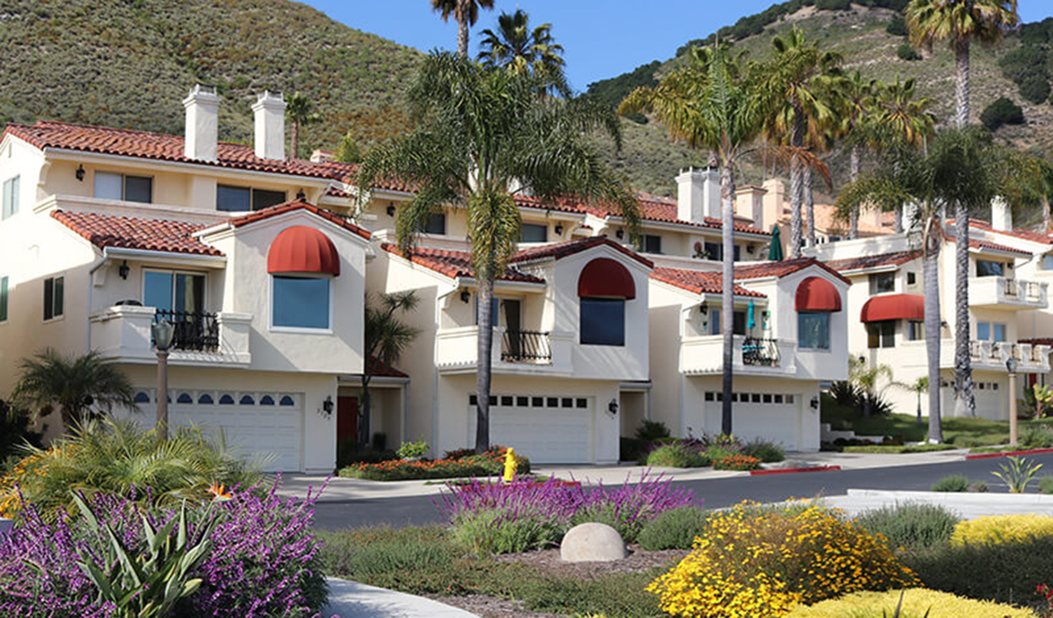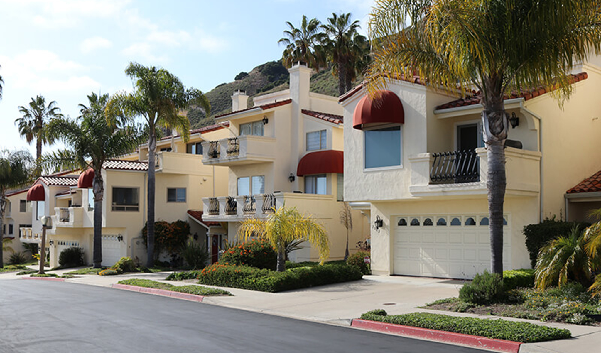 This planning unit development (PUD) consisting of 78 units comprised of townhouses, single family residences, and "flats" featuring a Mediterranean motif and designed to maximize views to the Pacific Ocean from each unit.