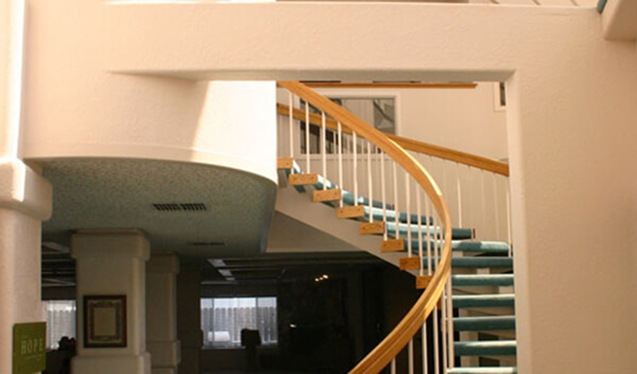 This remodel of an existing ‘standardized’ plan added approximately 1,200 sqft of lobby and staircase leading up to the new administrative offices and reception area.