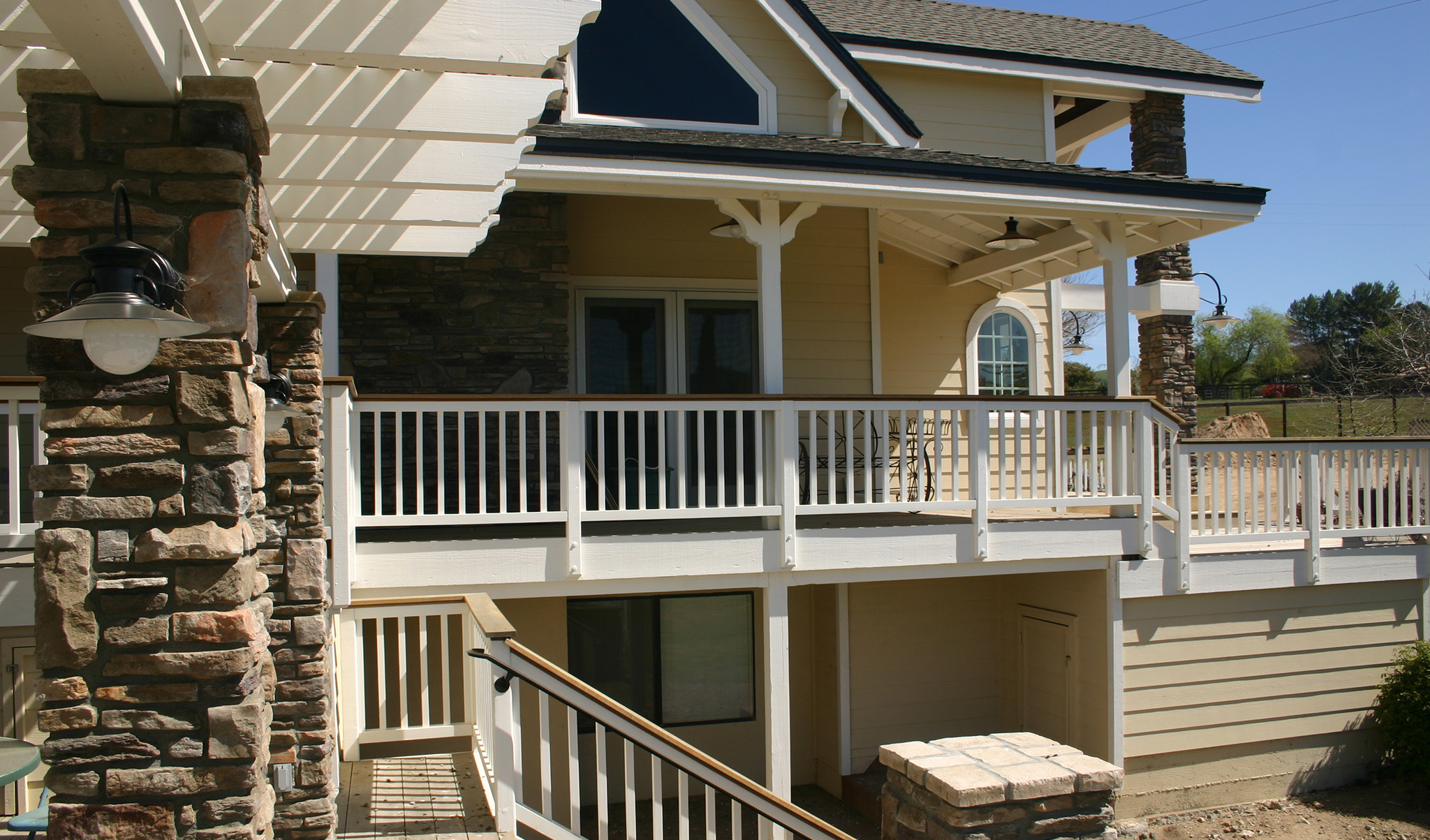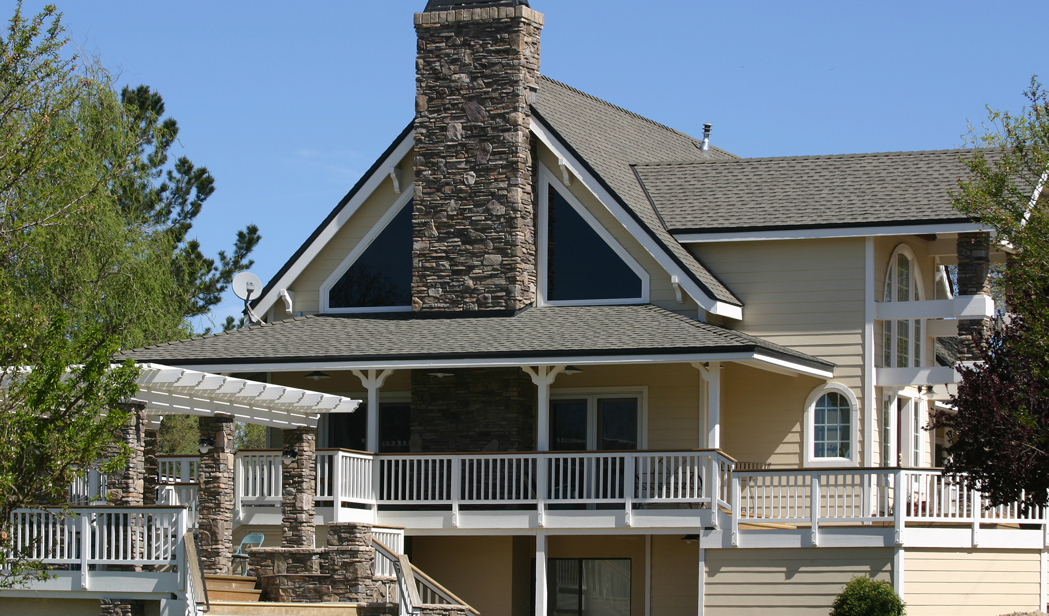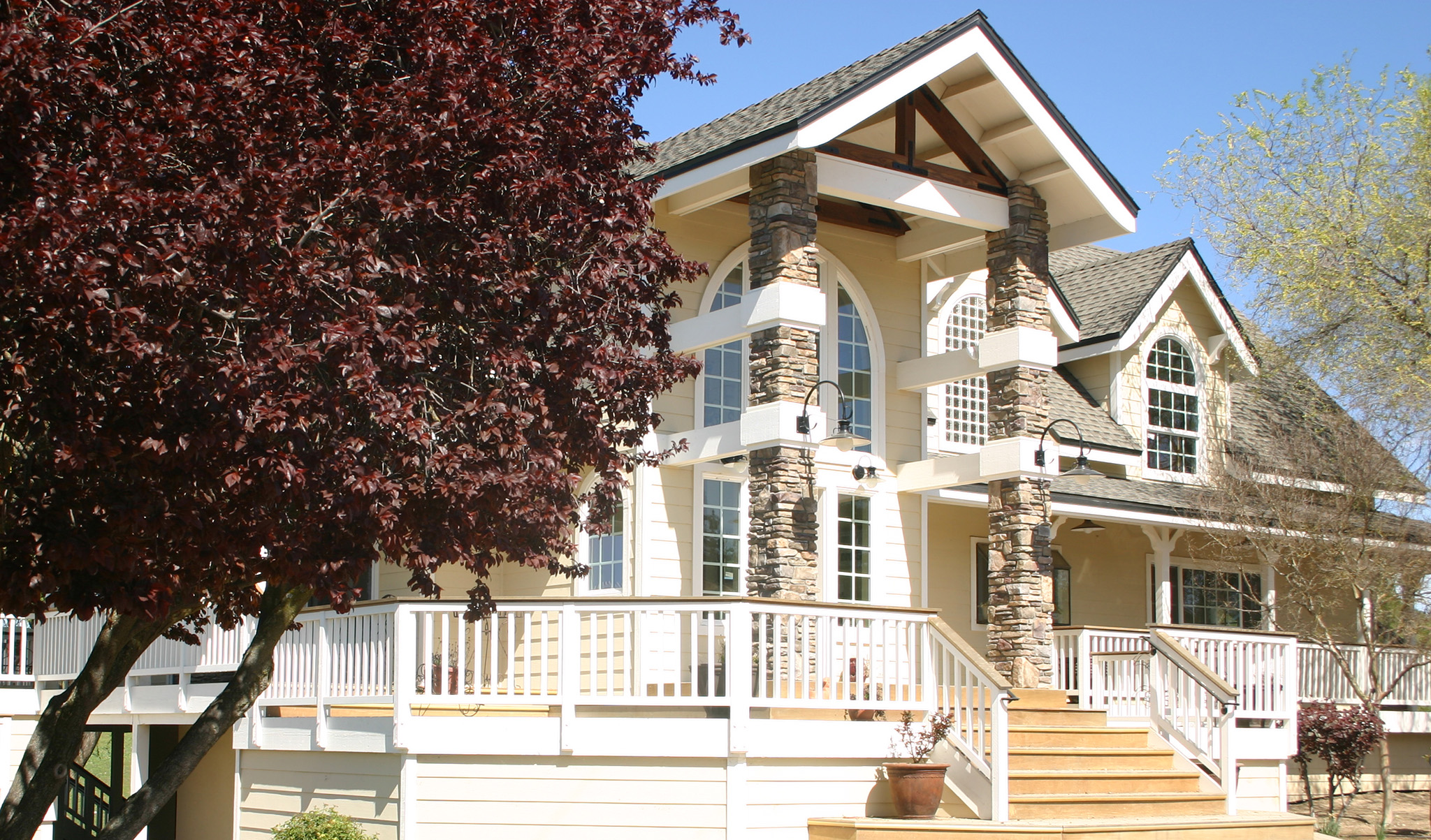 By the use of these key design elements, we were able to conceal the "A-Frame" look and reflect a more traditional home style. The interiors were also upgraded to complement the overall "facade" change.