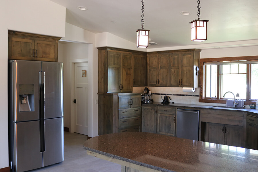 The custom residence features Craftsman style architecture, hydronic radiant floor heating, vaulted ceilings, an open foor plan, large dining and living room areas, multiple fireplaces, and a detached 2-car garage.