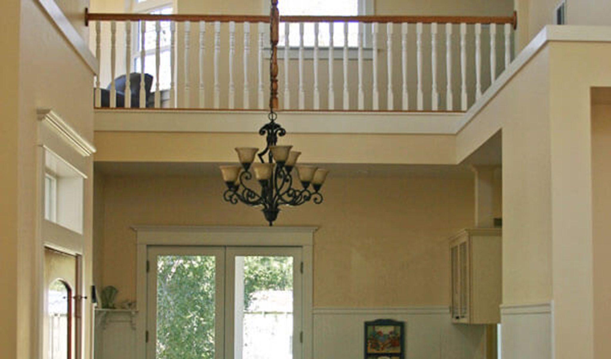 The upstairs is made up of an additional master bedroom suite, a third bedroom, bathroom, computer/game room and library which are connected by a “bridge” above the dining and living rooms below.