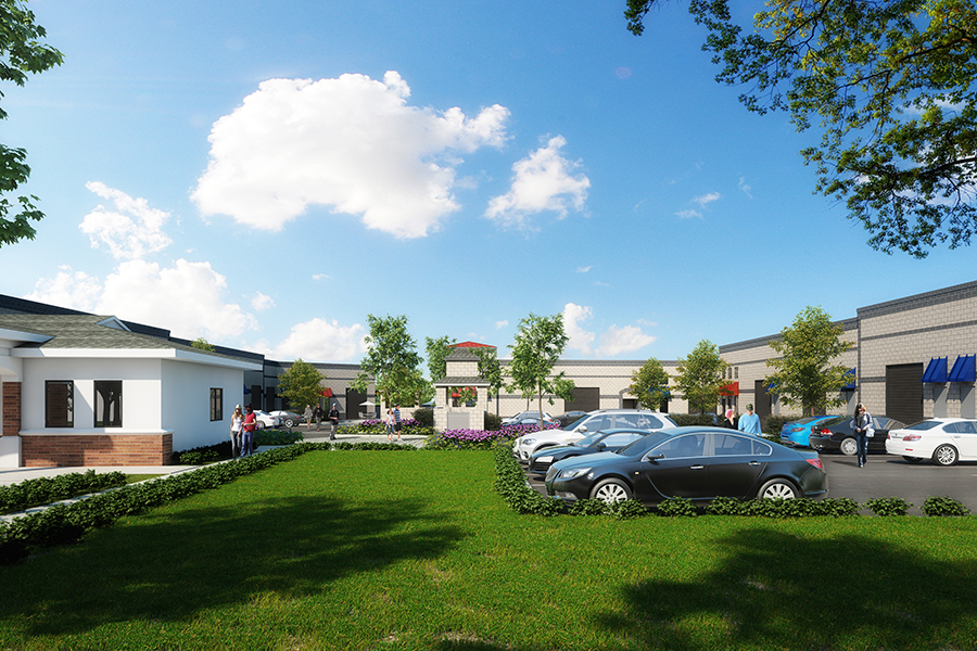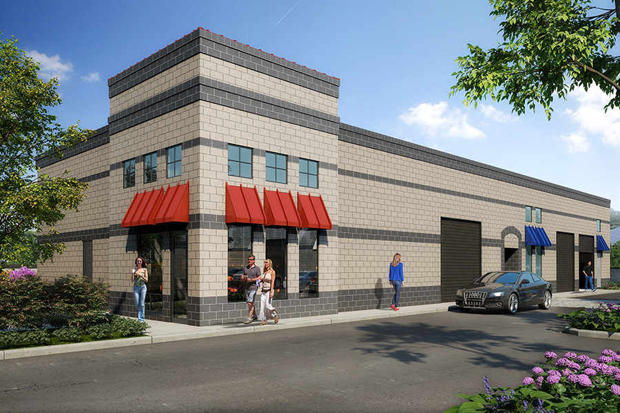 Each building consists of tenant spaces ranging from 1,200sf to 5,600sf of industrial space w/supportive office/storage spaces above. the style architecture is straight forward split face masonry w/accent banding and wainscot along w/metal “eyebrow” canopies at unit entries.