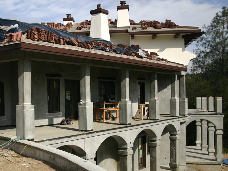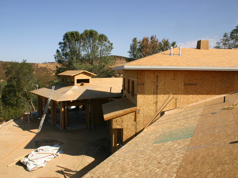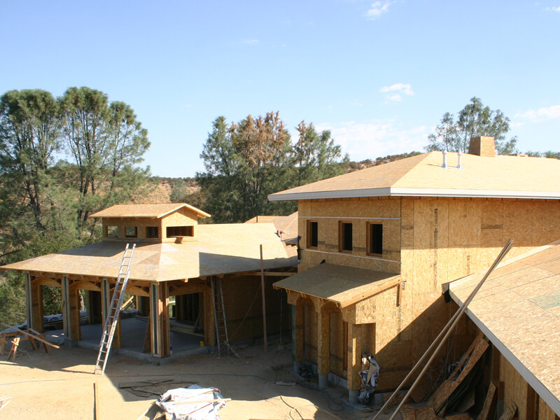 This project is unique in many ways. The two-story structure consists of approximately 6,500 square feet built into the hillside with decks and patios off both levels which enjoy a view of a private lake.