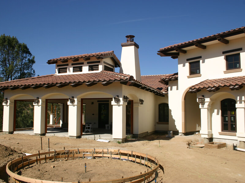 The entire residence is fire prevention ready and will be supported with a solar system and backup generator. The architecture is a combination of Spanish, Mediterranean, and Mission and is majestically situated atop a knoll with 360-degree views which can be viewed from a semi-commercial kitchen, dining area, living room, den, and master bedroom.