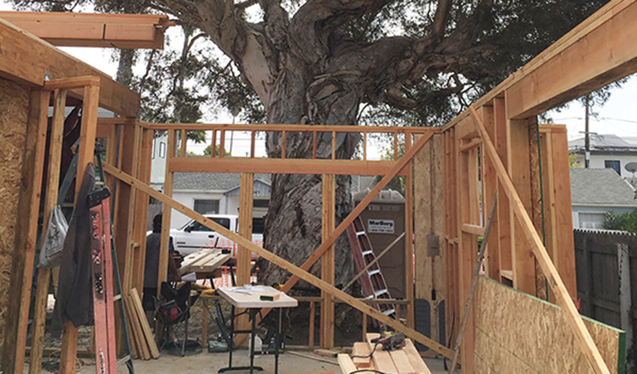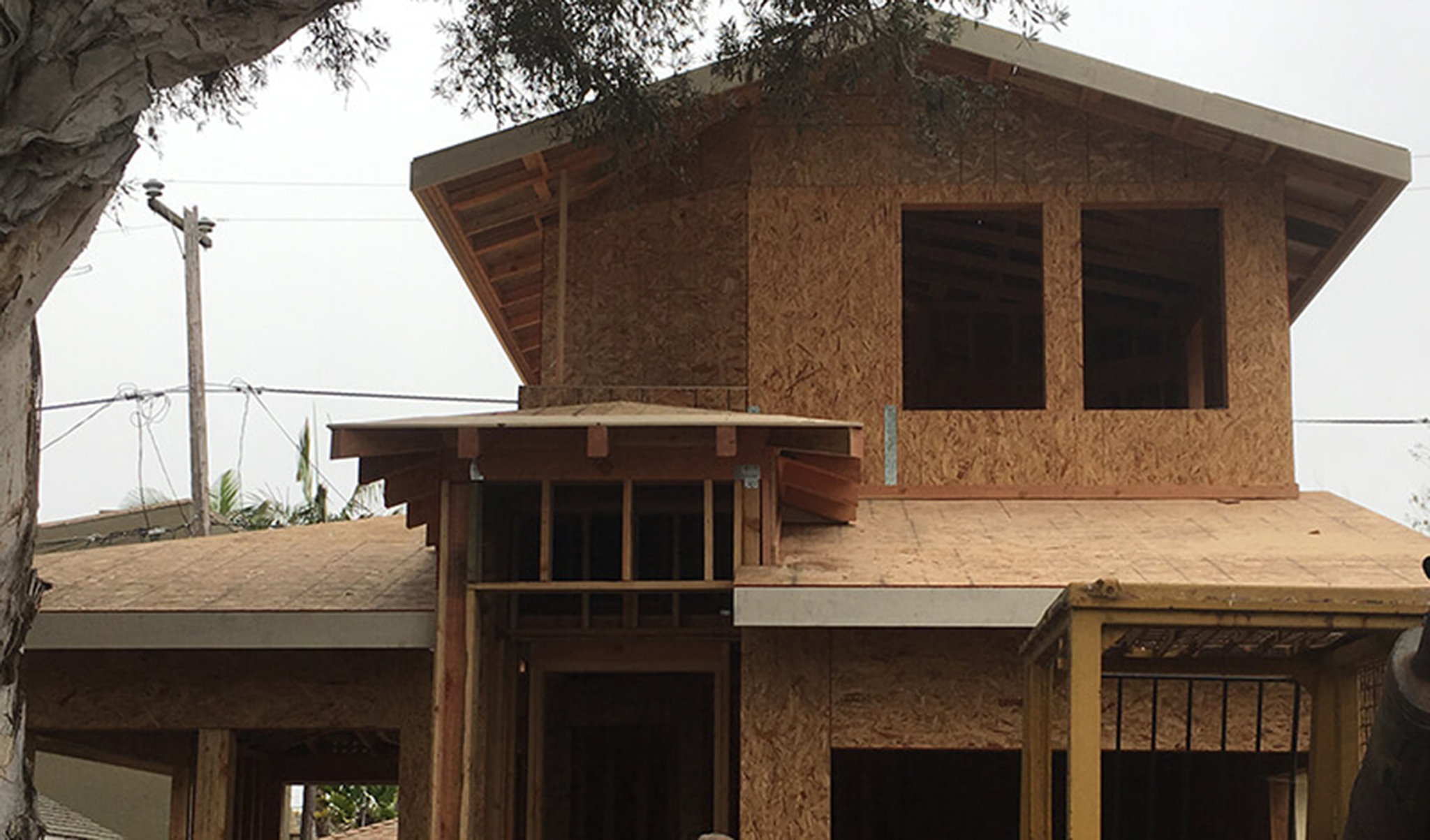 The design reflects the tight site restraints of designing around a unique protected large tree on a postage size property lot and the City of Pismo’s local ordinances while meeting with the client’s desires for a unique home that is contemporary yet “soft” in appearance with a feeling of open livability within.