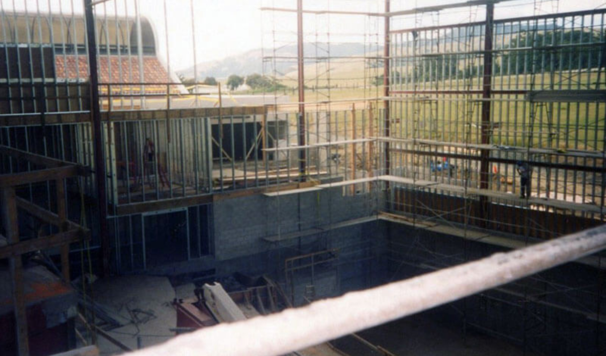 The challenge on this project was to fit a five-story high screen within a two-story height limitation set by the Coastal Commission in San Simeon, California. The obvious solution was to dig 3 stories down.