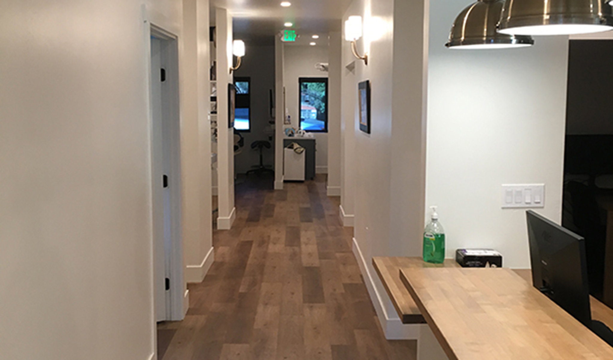 The commercial T.I. consisted of an all new layout featuring a reception area, eight new patient rooms, recovery and supportive spaces, waiting room, staff lounge, staff restroom, handicap accessible restroom, office spaces, and more accessible hallways for patients and staff members.
