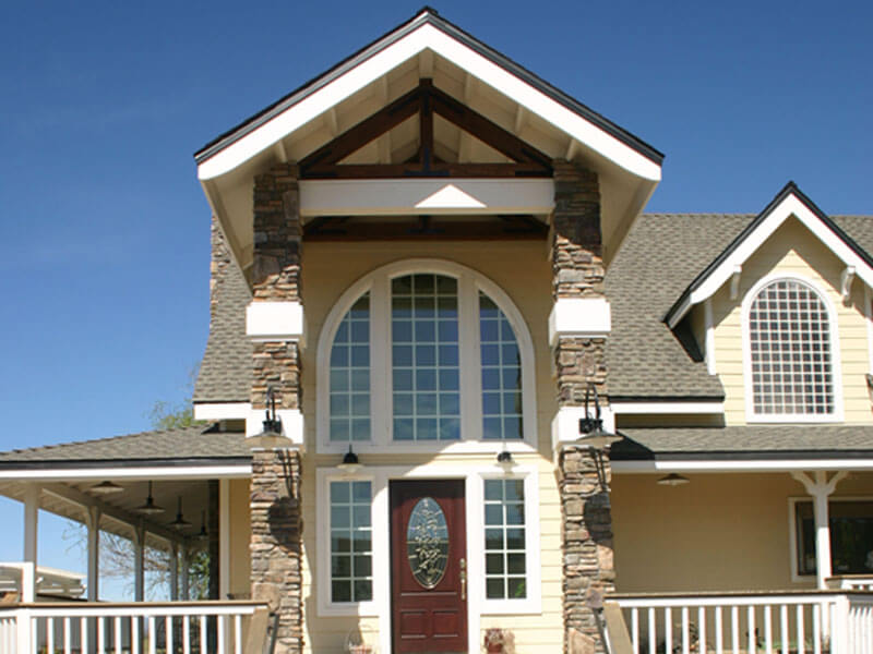 By the use of these key design elements, we were able to conceal the "A-Frame" look and reflect a more traditional home style. The interiors were also upgraded to complement the overall "facade" change.