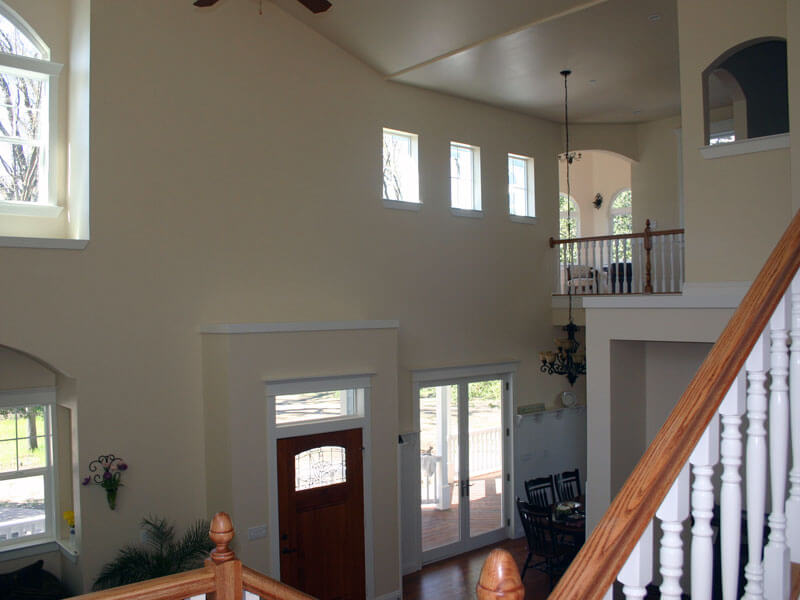 The upstairs is made up of an additional master bedroom suite, a third bedroom, bathroom, computer/game room and library which are connected by a “bridge” above the dining and living rooms below.
